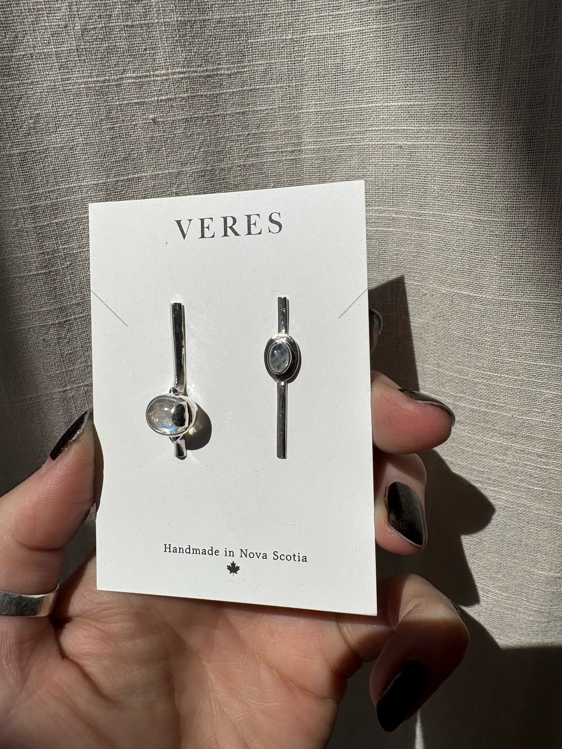 Sisters, not twins. Asymmetrical Sterling silver and moonstone earrings.